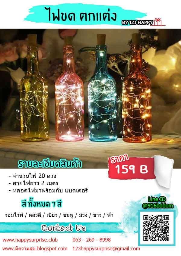 ในการตกแต่งบ้านและร้านอาหารในยุคปัจจุบันนี้ ต้องยอมรับว่าหนุ่มสาวยุคใหม่ถนัดการดีไซด์ของใช้ได้น่ารักมาก โดยเฉพาะพร็อพที่ขาดไม่ได้อย่างเช่น ไฟรูปแบบต่าง ๆ ไม่ว่าจะเป็นไฟเชอรี่หรือไฟปิงปอง ไฟกลมด้าย ไฟกระพริบแบบต่าง ๆ ไฟหนับประดับ หรือแม้กระทั่งขวดก็ถูกนำมาดัดแปลงเป็นไฟประดับสำหรับมุมเล็ก ๆ ของคุณ ที่ต้องการการผ่อนคลายจากการทำงานที่ตึงเครียดมาทั้งวัน ขวดที่ประดับด้วยไฟ จึงเป็นอีกหนึ่งทางเลือกที่สาว ๆ นิยมใช้ในบ้านหรือคอนโด เพราะต้นทุนที่ไม่ได้สูงมากมายนัก ตลอดจนสามารถหาซื้อได้ง่าย อีกทั้งยังสามารถประหยัดแทนการใช้ไฟได้อีกด้วย และยังสามารถปรับเปลี่ยนการใช้งานได้หลายอย่าง เราคือผู้ให้บริการจำหน่ายไฟประดับขวดที่มีให้คุณเลือกหลากหลายรูปแบบ นอกจากนี้เรายังมีไฟประดับในรูปแบบอื่น ให้คุณเลือกใช้ในการตกแต่งบ้าน ไม่ว่าจะเป็นไฟหนีบประดับ ไฟดาวประดับ ไฟเชอรี่ ไฟกลมด้าย ตลอดจนไฟกระพริบและเทียนประดับหลากหลายรูปแบบไว้ให้คุณเลือกใช้