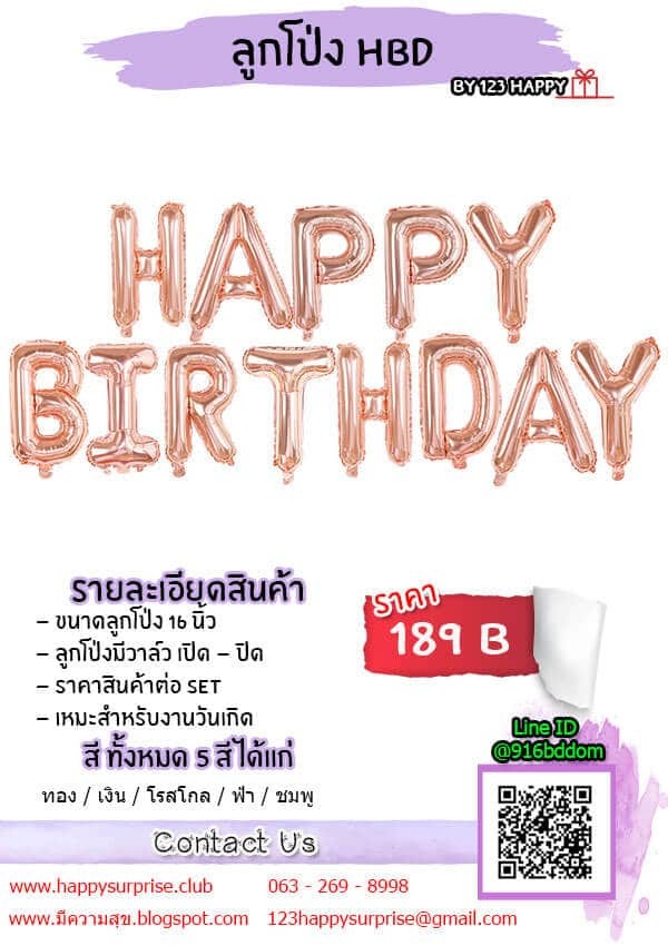 ลูกโป่งหลากหลายรูปแบบถูกผลิตขึ้นมาเพื่อโอกาสพิเศษต่าง ๆ หลากหลายราคาและวัสดุที่นำมาใช้เพื่อตอบสนองความต้องการในโอกาสที่ต่างกัน ลูกโป่งฟลอยส์สีสันสดใสเป็นตัวการ์ตูน หรือถ้าย่อมเยาหน่อย ก็ลูกโป่งตัวอักษรหลากหลายสีสันใส่ตะกร้าหวายสวย ๆ สำหรับแจกเนื่องในโอกาสเปิดร้านขนม จะเห็นได้ว่าลูกโป่ง คือ ตัวแทนของความสุขและความร่าเริงของคนทุกเพศทุกวัยจริง ๆ เรามีลูกโป่งตัวอักษรสีต่าง ๆ เช่น สีเงิน สีชมพู สีทอง สีฟ้า สีโรสโกลด์ สีพาสเทล สีมุกและสีเมทัลลิก ไว้บริการให้คุณได้เลือกซื้อตามความต้องการในการใช้งาน  นอกจากนี้แล้วพร็อพที่ใช้ในงานตกแต่งต่าง ๆ เราก็มีมานำเสนอให้คุณได้เลือกใช้สอย เช่น ไฟราว ไฟประดับต่าง ๆ ธงผ้า ดอกไม้ ฯลฯ ครบครันในแหล่งเดียว ให้เราได้มีโอกาสเป็นผู้ช่วยในวันพิเศษของคุณ เพราะเรารู้ว่าคุณมีคนสำคัญ และเราต้องการจะช่วยให้โอกาสสำคัญและวันพิเศษของคุณน่าประทับใจและน่าจดจำเสมอ ด้วยไอเดียที่ไม่มีวันสิ้นสุด