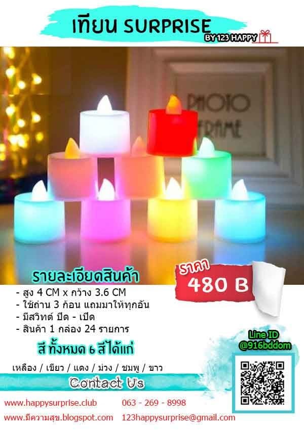 เทียนประดับ หรือ เทียนเซอร์ไพรส์ เป็นแบบใส่ถ่าน ปลอดภัยแน่นอน ใช้ในงานโอกาสพิเศษต่างๆ อาทิเช่น งานวันเกิด เป็นต้น
