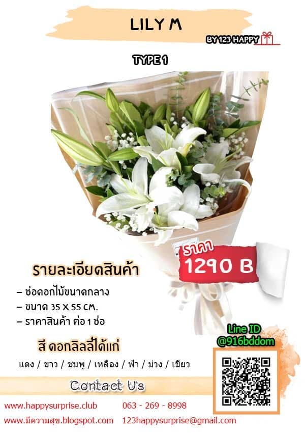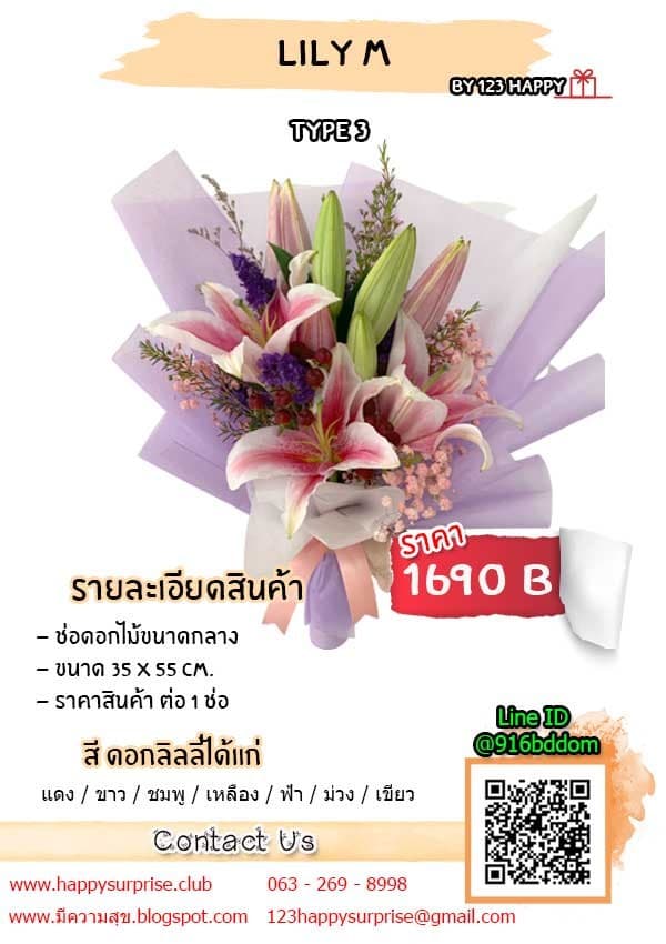 ลิลลี่ แม้ราคาจะแพงกว่ากุหลาบนิดหน่อย แต่ดอกลิลลี่ก็ยังสามารถจับต้องได้ สีที่คนนิยมมอบให้กัน ก็ได้แก่ สีขาว ที่หมายถึง ความบริสุทธิ์ อ่อนหวาน ไร้เดียงสา และอ่อนน้อมถ่อมตน ลิลลี่สีขาวจึงถูกใช้ทั้งงานแต่งและงานศพ